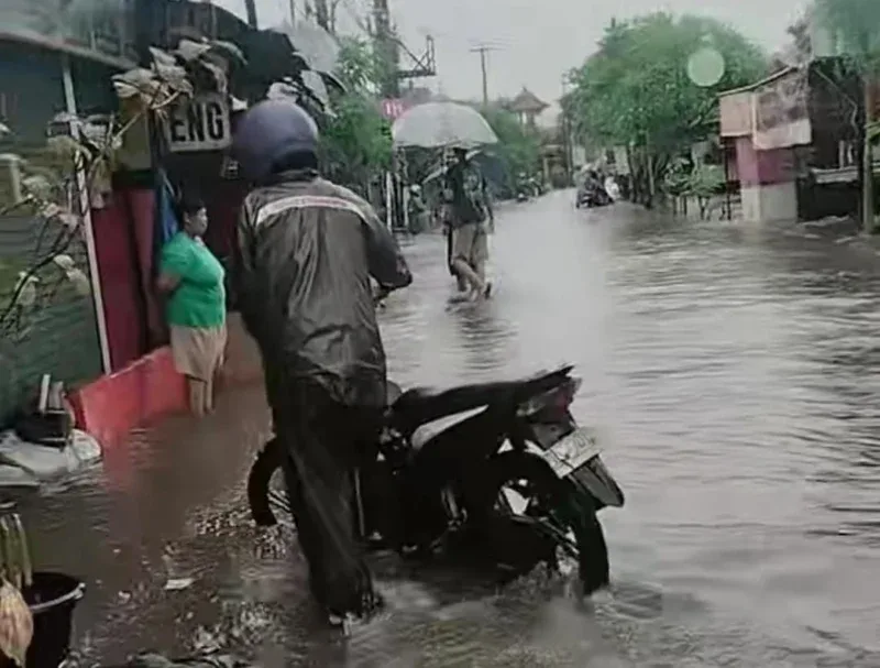 Salah seorang warga, Made Suryana, mengatakan banjir kerap terjadi saat hujan deras turun cukup lama. “Air cepat naik dan langsung menutup jalan. Banyak motor mati karena nekat lewat,” ujarnya.