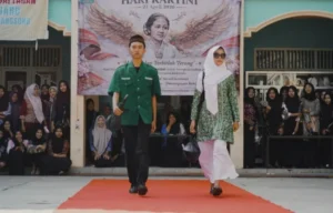 Suasana lomba fashion show Hari Kartini di SMA NU 05 Brangsong berlangsung meriah, para siswa tampil percaya diri mengenakan berbagai kostum profesi diiringi sorak sorai penonton.