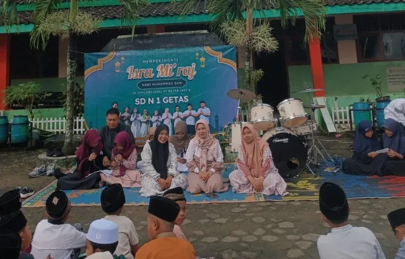 Kendal, ISR – Perkuat Aqidah Sejak Dini, SD Negeri 1 Getas Peringati Isra Mi’raj Nabi Muhammad SAW dengan menggelar pengajian di halaman sekolah, Kamis (15/1/2026). Kegiatan religius ini diikuti oleh seluruh siswa sebagai upaya menanamkan nilai keimanan dan kecintaan kepada Rasulullah SAW sejak usia sekolah dasar.