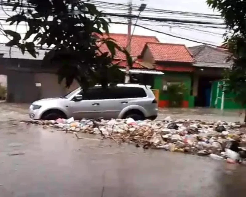 Air mulai masuk ke lingkungan permukiman warga setelah hujan dengan intensitas tinggi mengguyur wilayah hulu sejak pagi hari. Genangan air di perumahan warga bervariasi, dengan ketinggian mencapai 20 hingga 50 sentimeter di sejumlah titik.