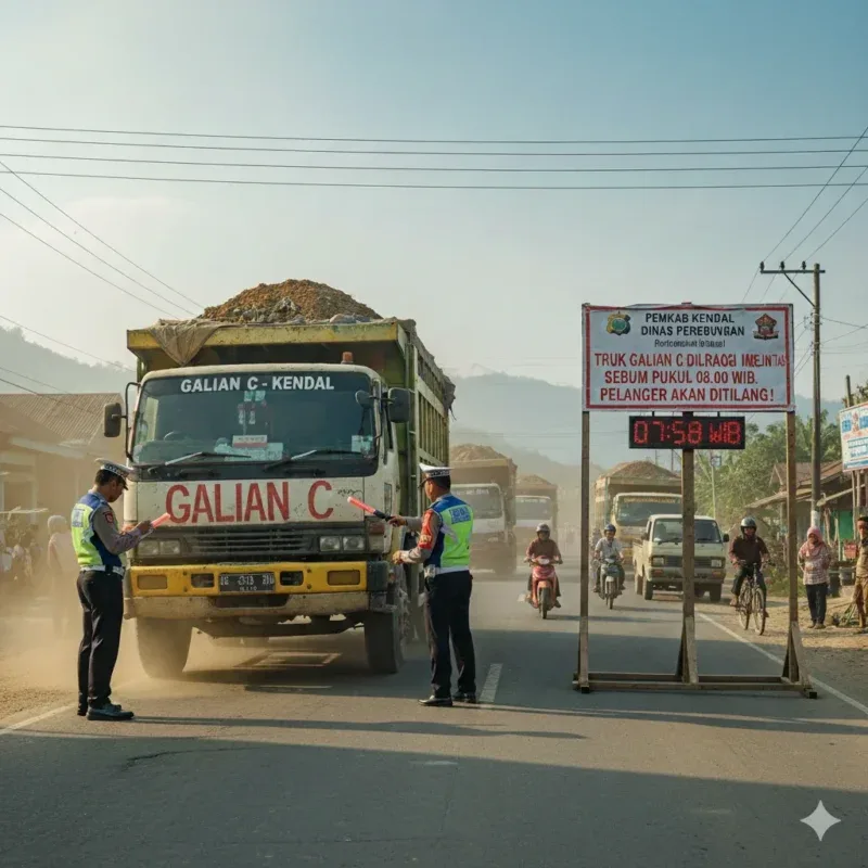 Pemerintah Kabupaten Kendal melalui Dinas Perhubungan (Dishub) menetapkan pembatasan pada jam sibuk pagi. Truk Galian C dilarang melintas sebelum pukul 08.00 WIB demi menjaga keselamatan warga, terutama saat jam berangkat kerja dan sekolah.