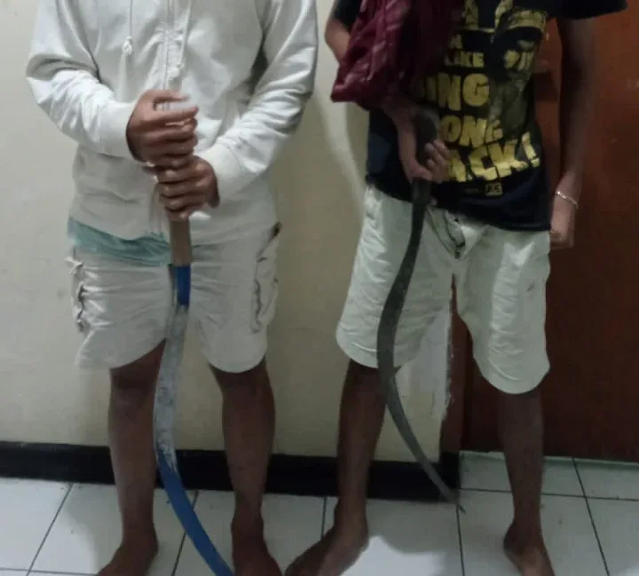 Dari hasil penggeledahan, polisi menemukan dua pucuk senjata tajam jenis barang yang diduga kuat akan digunakan untuk bentrokan. Tak hanya itu, dua unit sepeda motor dan dua unit handphone turut diamankan sebagai barang bukti.